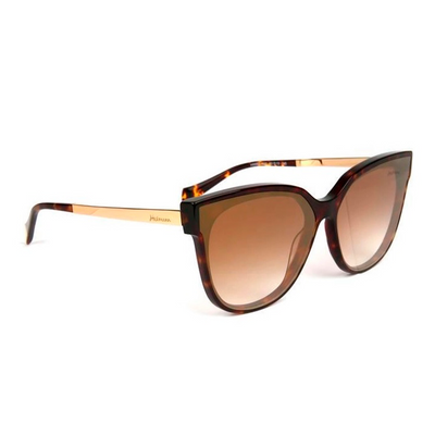 ÓCULOS DE SOL HICKMANN DEMI: óculos solar Marrom com Brilho, estampa Tartaruga; Lente Dourado Degradê Espelhada. Forma da Armação: Retrô