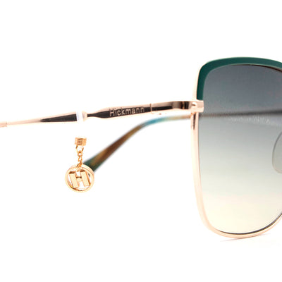 ÓCULOS DE SOL HICKMANN VERDE COM DOURADO: O óculos de sol é indicado para o uso adulto Feminino, com seu formato Gatinho é recomendado para rostos Quadrado e Redondo, porém pode ser usado por todos os tipos de rostos, dependendo do seu gosto e estilo, com seu tamanho 55 mm equivalente ao tamanho M.