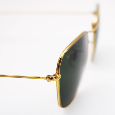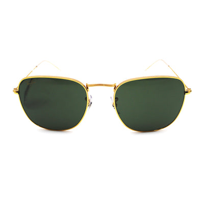 Os óculos de sol Ray-Ban RB3857 Frank têm design unissex. O formato quadrado clássico com armação em metal e hastes douradas é ao mesmo tempo estiloso e funcional. Os óculos de sol Ray-Ban RB3857 Frank vêm com clássicas lentes verdes, que proporcionam uma proteção contra os raios UV de 100%, um estojo macio e um pano de limpeza.
